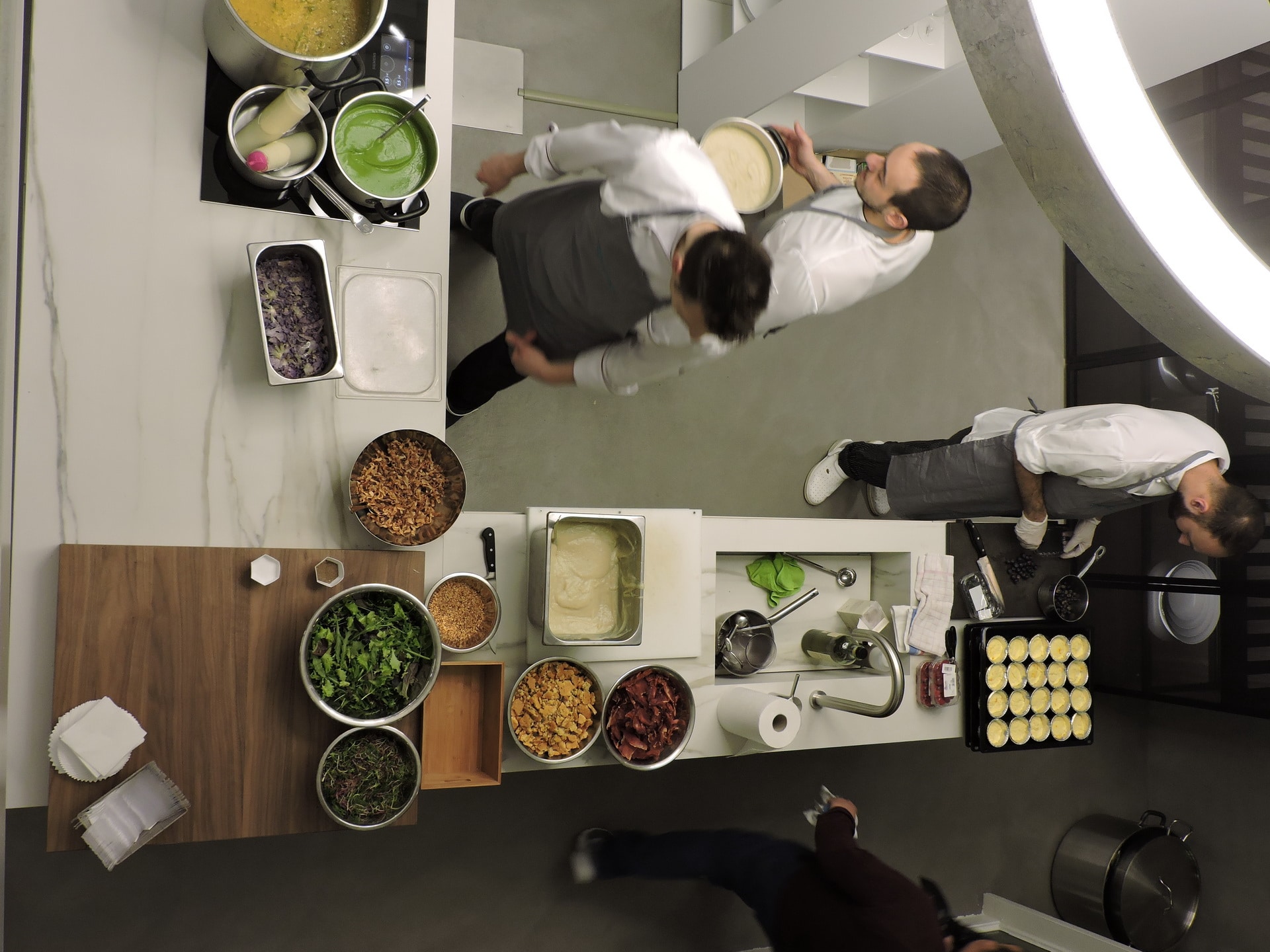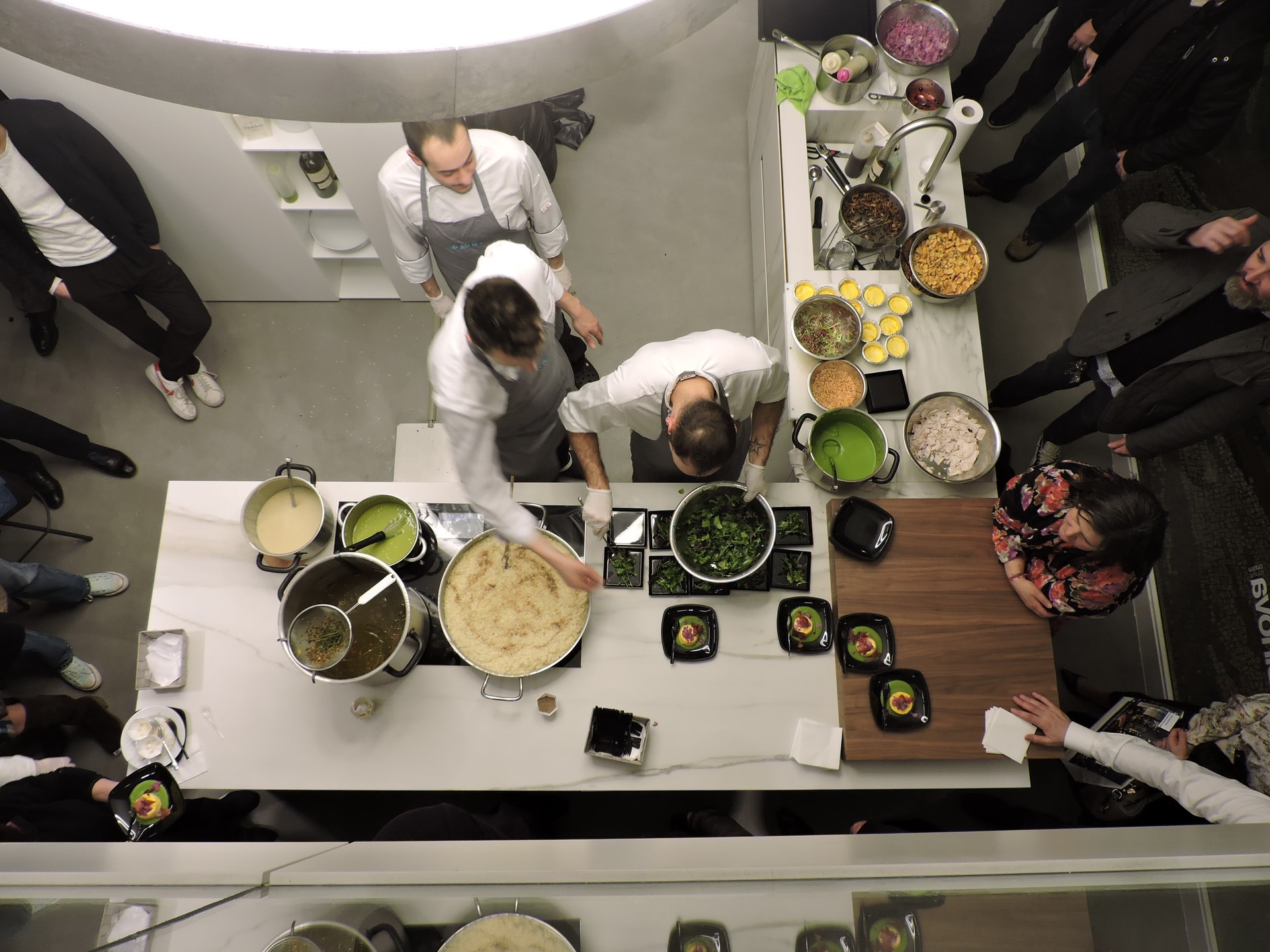Cucine d’arte: inaugurando il nuovo atelier abbiamo voluto condurre il visitatore attraverso un percorso sensoriale fatto di colori, volumi, materiali perfettamente integrati.